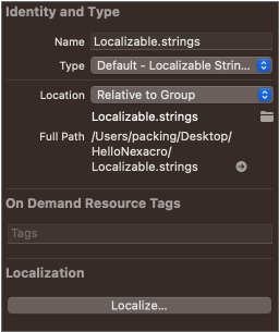 In the Utilities pane on the right side of the Xcode screen, click "Localize..." button in the Localization section to select the language for your app. If you do not add another language in advance in the project's settings, the language will be English by default.