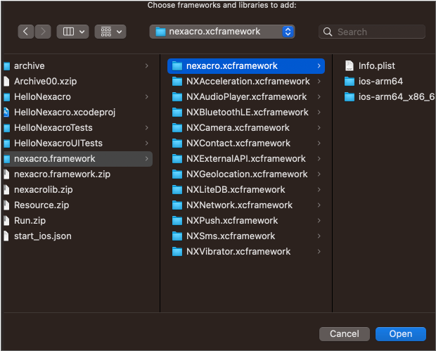 Add Nexacro libraries to your iOS project to establish an optimal environment for Nexacro.
