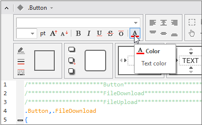 コードでcolorプロパティ値と[Preview]に表示されるButtonコンポーネントの文字色の変更を確認できます。