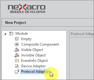 Projectウィザードが表示されます。Module項目で「Protocol Adaptor」を選択します。