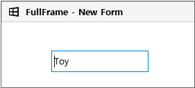 変更された内容を保存して、ツールバーの[QuickView]項目を選択します。nexacroブラウザが実行されながら画面にEditコンポーネントが表示され、バインドされた値を確認することができます。行(Row)の情報を変更していなかったので、最初の行(Row)のデータである「Toy」が表示されます。
