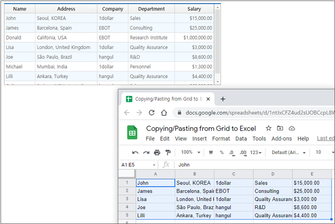 When using a computer, the Copy (Ctrl+c) / Paste (Ctrl+v) functions through the system clipboard are often used for the convenience of use. Likewise, you can use copy/paste by implementing the function in Nexacro.