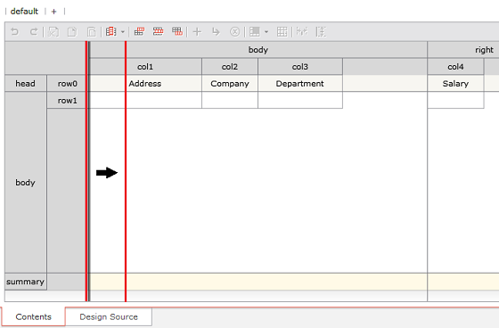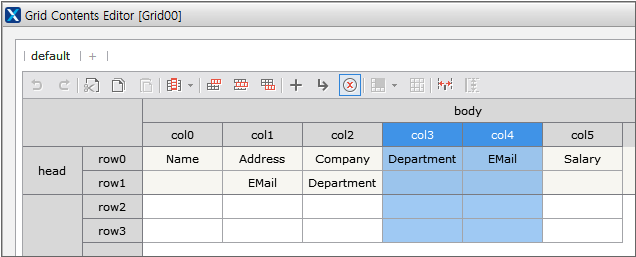 Select each cell under Address, Company Column in the newly added head row, and enter EMail, Department in the text property.