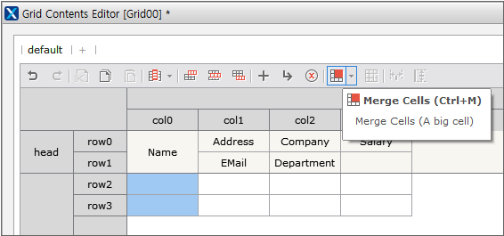 Because of the addition of head row and body row, two rows of Name, Salary Column are created. Combine them into one. Select Cell to merge, and click the Merge Cells
