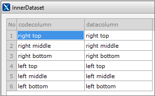 Find the innerdataset item in the property window and run the InnerDataset edit window. Display 3 menu items of A, B, C on the screen and select item A to display 2 menu items, which are A-1 and A-2. When you open the innerdataset edit window, there are many items to be input. Specify only 2 property values, which are captioncolumn, levelcolumn.