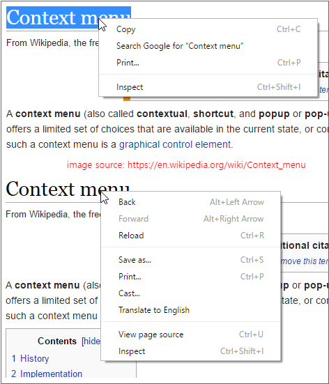 The PopupMenu component is used to process when specific functions are needed in web browsers or development tools. It is also called by the name of the context menu, pop-up menu, or pop-up. Menu items can be displayed differently depending on the current status of the user. For example, if you select a specific character string in the web browser and call the menu, then functions such as copy, search, and print are displayed. Otherwise, functions such as page movement and source view are displayed.