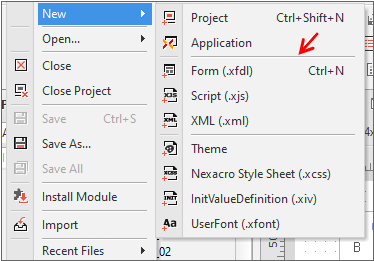 When you open the Nexacro Studio menu, certain menu items are grouped together and a divider is displayed in the middle. The divider itself does not have a function, but it allows the user to easily recognize the menu items if there are many of them.