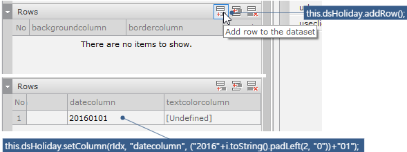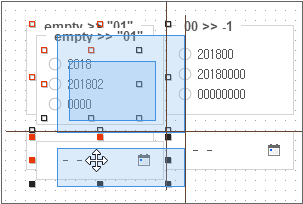Modify the type property value of the Calendar component to 'monthonly'. You also need to appropriately modify the height value of the component. It will be displayed nicely if it is set to the same value as the width value. For the Radio component, set the innerdataset value as follows. At this time, the codecolumn value corresponding to false should be set to blank characters.