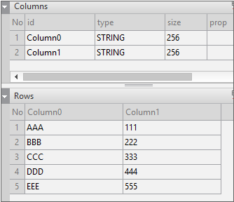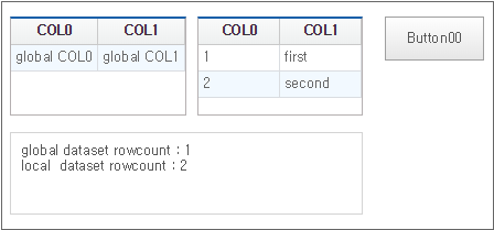 Place the Grid component and the Button component as shown in the example. Then, create 2 Dataset objects. For one (Dataset00), specify data as shown below and bind it to the first Grid component. For the other Dataset (Dataset01), bind it to the second Grid component without specifying data.
