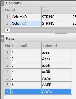 In order to process case-insensitively, all strings to be compared must be matched with uppercase or lowercase letters. In the example, toUpperCase is used to convert both the Dataset object data and the text entered in the Edit component to uppercase and compare them.