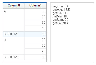 Run it with QuickView (Ctrl + F6) and select the Row corresponding to SUBTOTAL to output the information about the grouped data to the TextArea component.