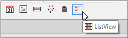 Select ListView from the toolbar and drag it to an appropriate size on the form to create it. Select the component and click on the form to create it in the default size.