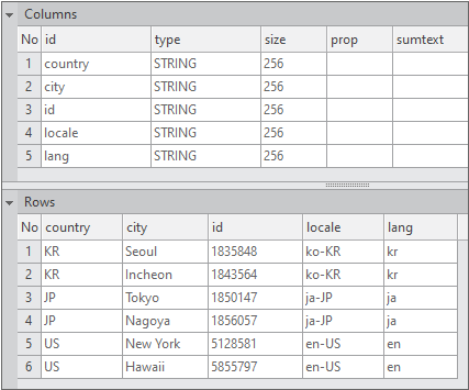 Set only the column information in the Dataset object as shown below.