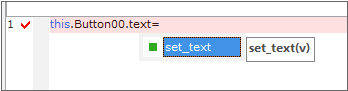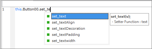 이전 단계에서 "this.Button00." 다음에 "set_"으로 시작하는 텍스트를 입력해도 같은 코드를 작성할 수 있습니다.