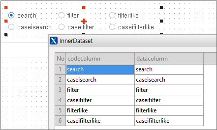 Radio 컴포넌트의 innerdataset 속성값을 아래와 같이 지정합니다.