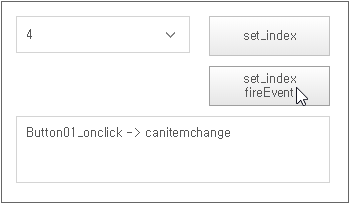 Combo 컴포넌트의 index 속성값을 스크립트에서 수정한 경우에는 이벤트가 발생하지 않습니다. 하지만, 필요에 의해 이벤트가 발생해야 한다면 강제로 이벤트를 만들 수 있습니다.