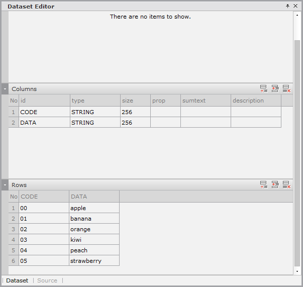InnerDataset 편집기를 사용하면 내부적으로 데이터셋을 생성하고 Combo에 바인딩시켜주는 작업이 자동으로 수행됩니다.