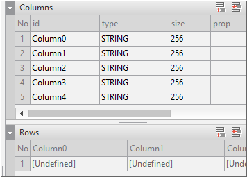 생성한 Dataset에 데이터 아이템 목록을 입력합니다. Invisible Objects 영역에 있는 Dataset00을 더블 클릭하면 Dataset Editor가 뜨는데 Columns와 Rows에 아래 그림과 같이 입력합니다.