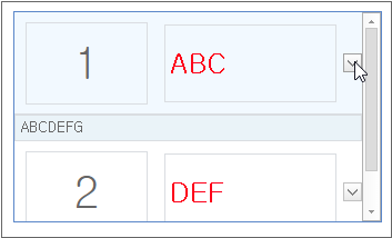 Body 밴드 설정에서 expandbartype 속성값을 true로 지정한 경우 목록 오른쪽에 Detail 밴드 영역을 제어할 수 있는 버튼이 표시됩니다. 이때 Detail 밴드 영역을 어떻게 표시할지 bandexpandtype 속성에서 지정할 수 있습니다. 속성값을 "expand", "accordion"으로 설정한 경우 비슷하게 동작하는 것처럼 보이는데 "accordion"으로 설정한 경우에는 한번에 하나의 Detail 밴드만 표시합니다. 예를 들어 첫 번째 아이템의 Detail 밴드가 열린 상태에서 두 번째 아이템의 Detail 밴드를 펼치면 첫 번째 아이템의 Detail 밴드는 자동으로 닫힙니다.