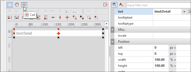 [Cell] 항목을 선택해서 셀을 추가하고 text 속성값과 Position 관련 속성을 수정합니다. 셀 편집이 끝나면 Enter 키를 입력하거나 [Exit Editor] 메뉴를 선택해 기본 편집 모드로 전환합니다.