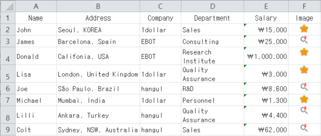 The following shows the contents of the Excel file saved on the local PC after exporting. You can see that the Grid data and image are exported as an Excel file.