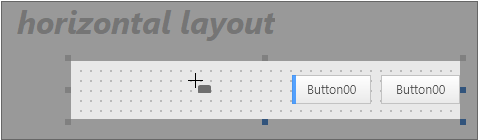 When selecting and placing components, the currently set type property information (horizontal layout) is displayed on the screen.