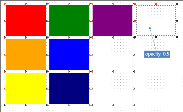 The Div component placed on the right is a temporary Div component to express movement when dragging. Set the visible property value to false and set the border property appropriately. To make the color of the moving Div component lighter, set the opacity property value to 0.5.