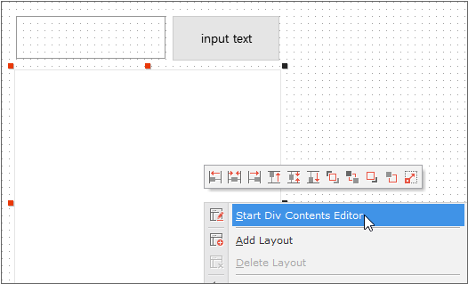 Select the Div component and select the [Start Div Contents Editor] item from the context menu, or select the [Start Div Contents Editor] item from the upper right toolbar of the design window.