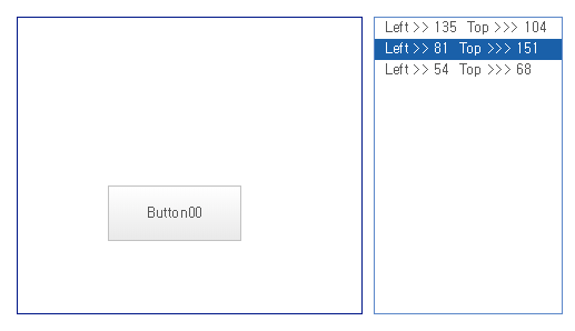 You can move the Button component by dragging it with the mouse. When the mouse button is released, the coordinate values are saved in the ListBox component, and when the list of ListBox components is selected, the coordinate values move to the previous coordinate values.