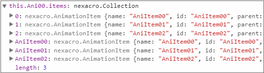 this.Ani00.addTarget("AniItem00", this.Button00, "width:200, left:300");When the addTarget method is executed normally, the AnimationItem object is added under the Animation object.