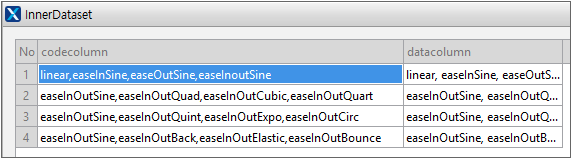 Note that the character string in the codecolumn item does not contain the blank character between the separator (,) and each property value. When changing the item, the value is converted into an array. If there is the blank character, then even blank characters can be recognized as an array value.