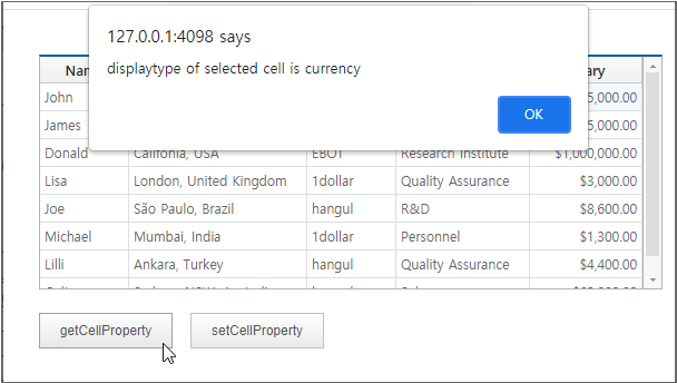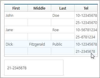 In the example on Setting Sub-cell Properties, we looked at how to retrieve information from merged cells. If you know the desired subcell index, you can retrieve the information using the getSubCellValue method, but when clicking a cell, the event object does not provide the subcell index. This example explores an alternative approach to retrieving data when a merged cell is clicked.
