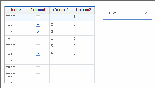 There are 3 Grid components merged in the same form, but each has different ways of processing checkboxes. The first Grid component does not react even when the checkbox area is selected, the second Grid component selects the checkbox when clicking anywhere in the cell area, and the third Grid component selects the checkbox when clicking the CheckBox control area.
