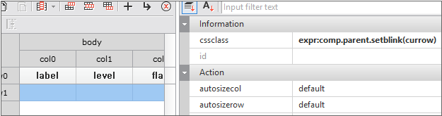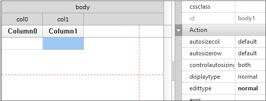 The following is an example of Grid in which the displaytype property of Cell is set. Among the two Grids, the upper one is Grid with the displaytype property set, and the lower one is the one with no setting.