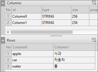 ds_data, and set the Dataset id for Combo tods_combo.Enter the data item list in the created Dataset. If you double-click Dataset in the Invisible Objects area, then the Dataset Editor appears. Enter Columns and Rows as shown in the figure below.