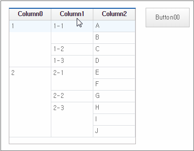 In the example for Displaying Cells of Selected Area as One Cell, the user manually merged selected cells into one, but in this example, adjacent cells with identical data are automatically merged and displayed as a single cell.