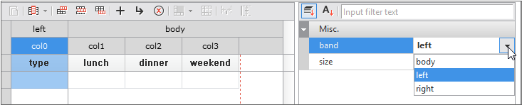Select the "type" column and change its band property to "left".