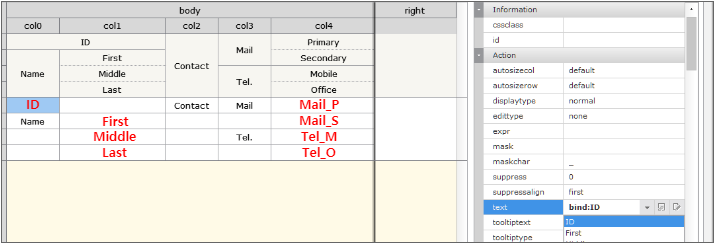 When Grid is first created, the format is not defined because it is impossible to know which data will be expressed in what form. In order to create the format, the user can directly create it using Grid Contents Editor or bind the Dataset.
