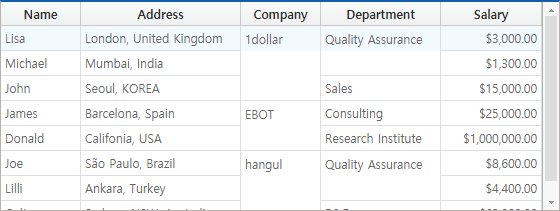 If you select the dataset from the Select dataset combo box, the corresponding Dataset is bound to Grid. Then, the createFormat method is executed, and the Grid format is created according to the Column structure of each Dataset. The format created after executing the createFormat method is immediately reflected in Grid.