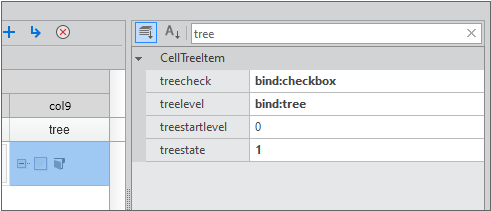 In the case of setting as the Tree type, you need to set treelevel indicating the depth of the tree, treestate indicating the status of the tree, and the treecheck property setting the checkbox of the tree in the Cell setting.