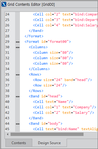 format00format has been properly created, click the Design Source tab in the Grid Contents Editor as shown below and check if theformat00information has been added to the source as shown below.