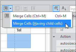 Select the first and second rows in the Tel column, then click “Merge Cells (Having child cells)” to merge them vertically.
