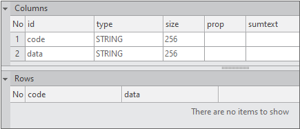<Column id="code" type="STRING" size="256"/>