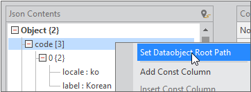 Select the item marked "data [24]" in the Json Contents data, right-click and select the [Set Dataobject Root Path] item.