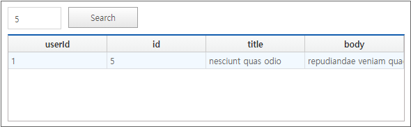 When the [Search] button is clicked, the entire data is searched. This example is similar to the simple data display example, but this one uses the request method, dynamically handling the Dataset object and Grid component settings.