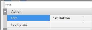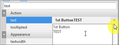 Find the text property item in the property window. You can find it right away by entering the desired item in the search window at the top of the property window.