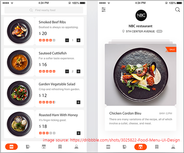 The image below is an introduction design for a restaurant menu used on a mobile device. Instead of simply listing the list, the image is placed on the left and the description of the image (menu) is placed on the right. In the case of the Grid component, it is not easy to highlight specific data, but because the ListView component processes individual data in each cell, you can display it by changing the font color or changing the font size to the desired format.