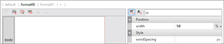Select the [Append Detail] item in the toolbar at the top of ListView Contents Editor and add the Detail band. Set the height property value of the Detail band to 250 and switch to the Detail band edit mode. Add the cell and set the cell properties as shown below.