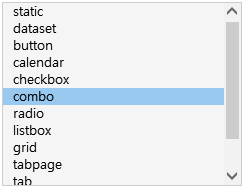 It is similar to Combo, except that the list of items is always open, and you can select multiple items. When selecting multiple items, select the items while holding down the Ctrl or Shift key.