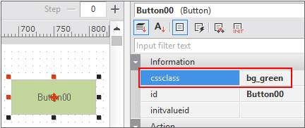 Create the Button component on the form design screen and set the cssclass property to bg_green.
